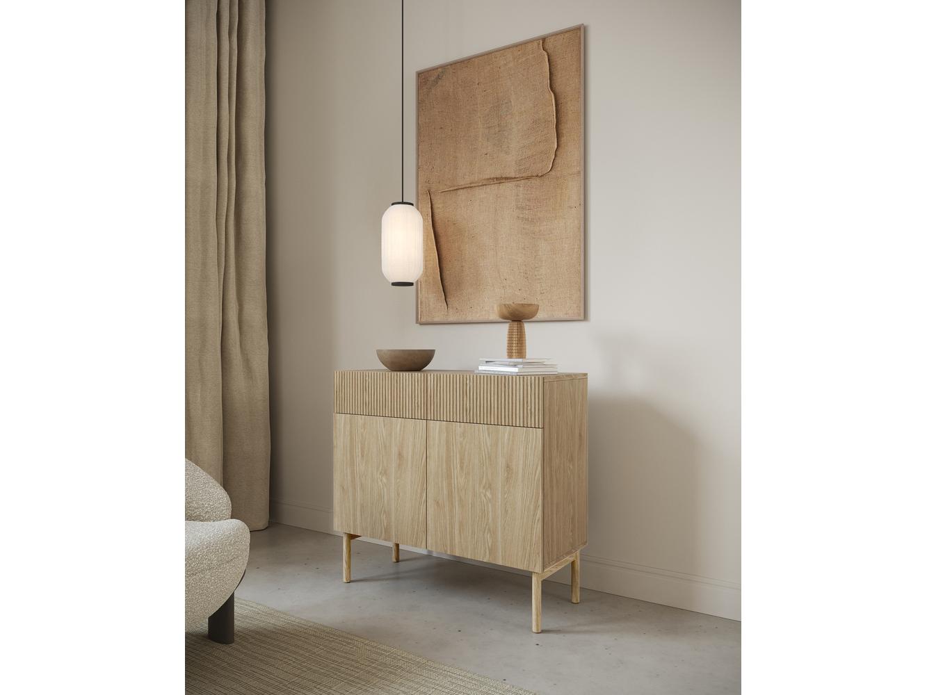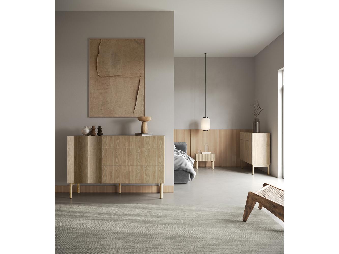 Snívate o interiéri, v ktorom sa snúbi minimalizmus japonského dizajnu s teplom škandinávskeho dreva? Objavte kolekciu a vneste do svojho bytu pokoj, eleganciu a funkčnosť Dvojdverová komoda je harmonickým spojením funkčnosti a estetiky v japonskom štýle! Nábytok je vyrobený z odolnej laminovanej dosky a MDF dosky s klasickými a prírodnými farebnými čelami, čo dodáva interiéru prirodzenú a príjemnú estetiku. Korpus je osadený na pevných drevených nožičkách, zvýrazňujúcich eleganciu nábytku. Dvere boli navrhnuté s ohľadom na funkčnosť a sú vybavené systémom push to open, ktorý umožňuje jednoduché a bezproblémové otváranie. Vnútro komody prekvapí svojou všestrannosťou. K dispozícii sú dve praktické zásuvky a štyri police, čo vám umožní prispôsobiť priestor vašim individuálnym potrebám. Japandi štýl je kombináciou jednoduchosti a útulnosti a kolekcia dokonale odráža túto rovnováhu Detaily produktu: korpus vyrobený z laminovanej dosky vo farbe R20348 Oiled Oak, hrúbka 16 mm, odolný voči vlhkosti, teplote a poškriabaniu, frézované predné strany vyrobené z made. z MDF dosky hrubej 16 mm, potiahnutá fóliou vo farbe korpusu, použitý systém push to open na čelách uľahčuje plynulé otváranie a zatváranie nábytku, drevené nohy dodávajú stabilitu a ľahkosť celej konštrukcii, konštrukcia zosilnená s 0,5 mm ABS hranami, Zásuvky umiestnené na 27 mm guľôčkových vodidlách zaisťujú hladké a voľné vysúvanie.