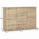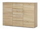 Univerzálna komoda so štyrmi zásuvkami umiestnenými v strede. Po stranách sú dvierka. Komodu je možné umiestniť do viacerých typov miestností a vie zastávať viaceré úložné role. Materiál je DTD laminovaná, farebné prevedenie je dub sonoma, vo vnútri za dvierkami sa nachádza polička.