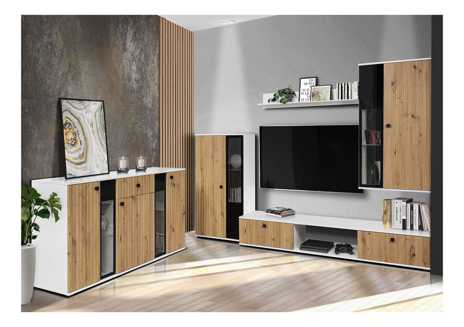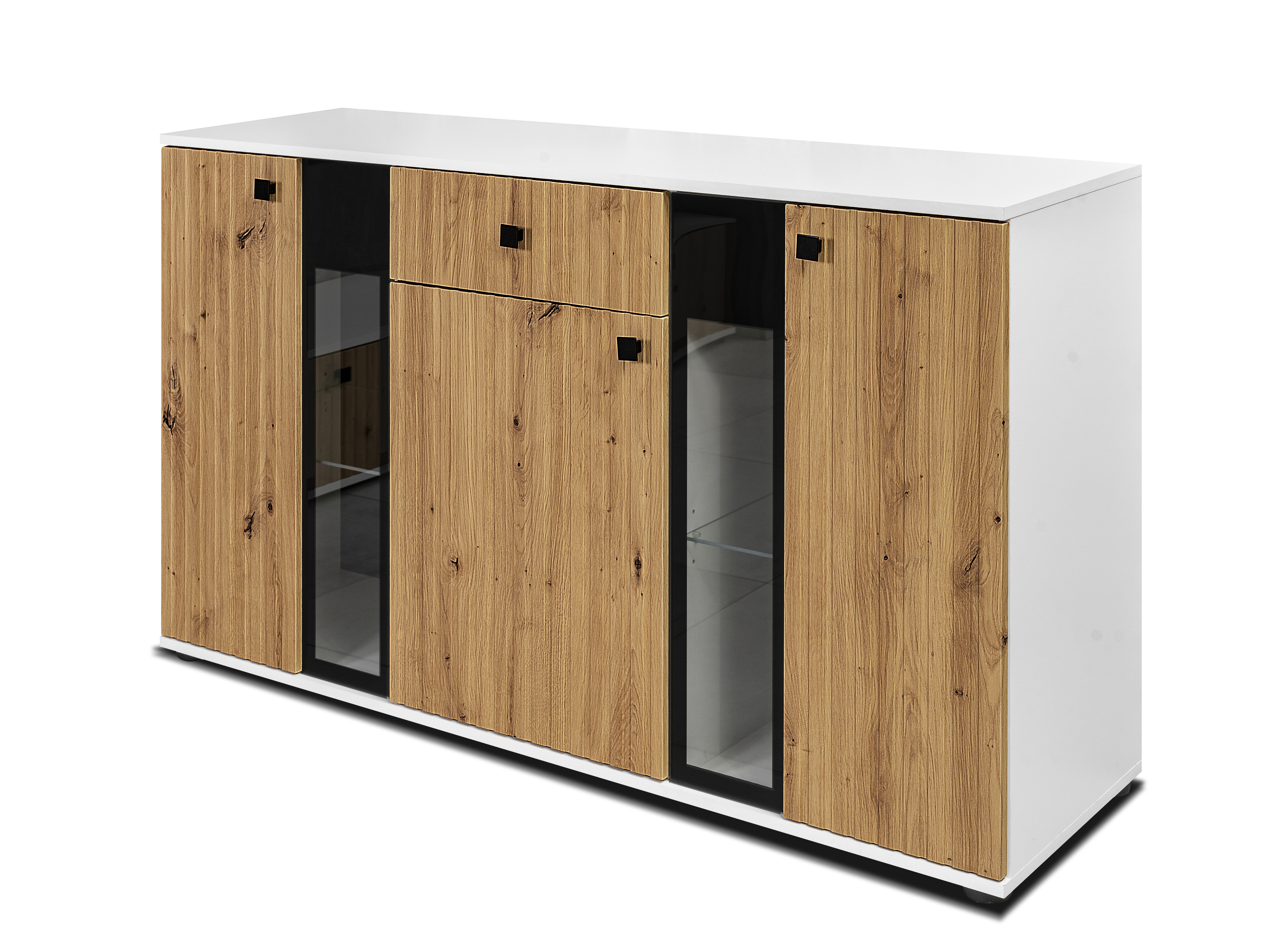 Komoda Saul (dub artisan + biela) (bez osvetlenia)