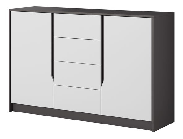 Komoda Serina 138 s výškou 92 cm a hĺbkou 42 cm v sivo grafitovej farbe a bielej farbe je dokonalým doplnkom pre váš domov. Táto komoda je vyrobená z kvalitného materiálu, ktorý zaručuje dlhú životnosť a odolnosť. Vďaka svojim rozmerom poskytuje dostatok úložného priestoru pre vaše veci a zároveň je dostatočne kompaktná, aby sa zmestila do každej izby. Svojím moderným dizajnom pritiahne zrak každého návštevníka. Komoda Serina 138 je ľahko skladateľná a jednoduchá na inštaláciu. Nechajte ju poslúžiť ako praktický a elegantný kúsok nábytku vo vašom interiéri.