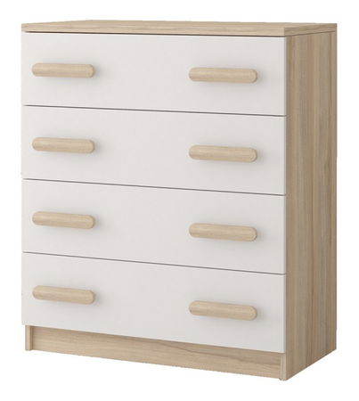 Komoda Sigil III 4S s výškou 93 cm a hĺbkou 40 cm v dubovom prevedení so sonoma farbou a bielymi detailmi je dokonalým doplnkom do každej modernej domácnosti. Vonkajšie aj vnútorné materiály sú vyrobené z 16 a 22 mm drevotriesky s ABS hranami o hrúbke 1,7 mm a 0,5 mm. Úchyty z dreva sú príjemné na dotyk a typ nožičiek s plastovými podložkami zabezpečuje stabilitu a ochranu pred poškodením podlahy. Táto komoda je navrhnutá tak, aby vám poskytla dostatok úložného priestoru na vaše veci a zároveň sa stala atraktívnym prvkom vášho interiéru. S jej elegantným, no zároveň robustným dizajnom, bude táto komoda určite vynikajúcim a praktickým doplnkom akéhokoľvek interiéru.