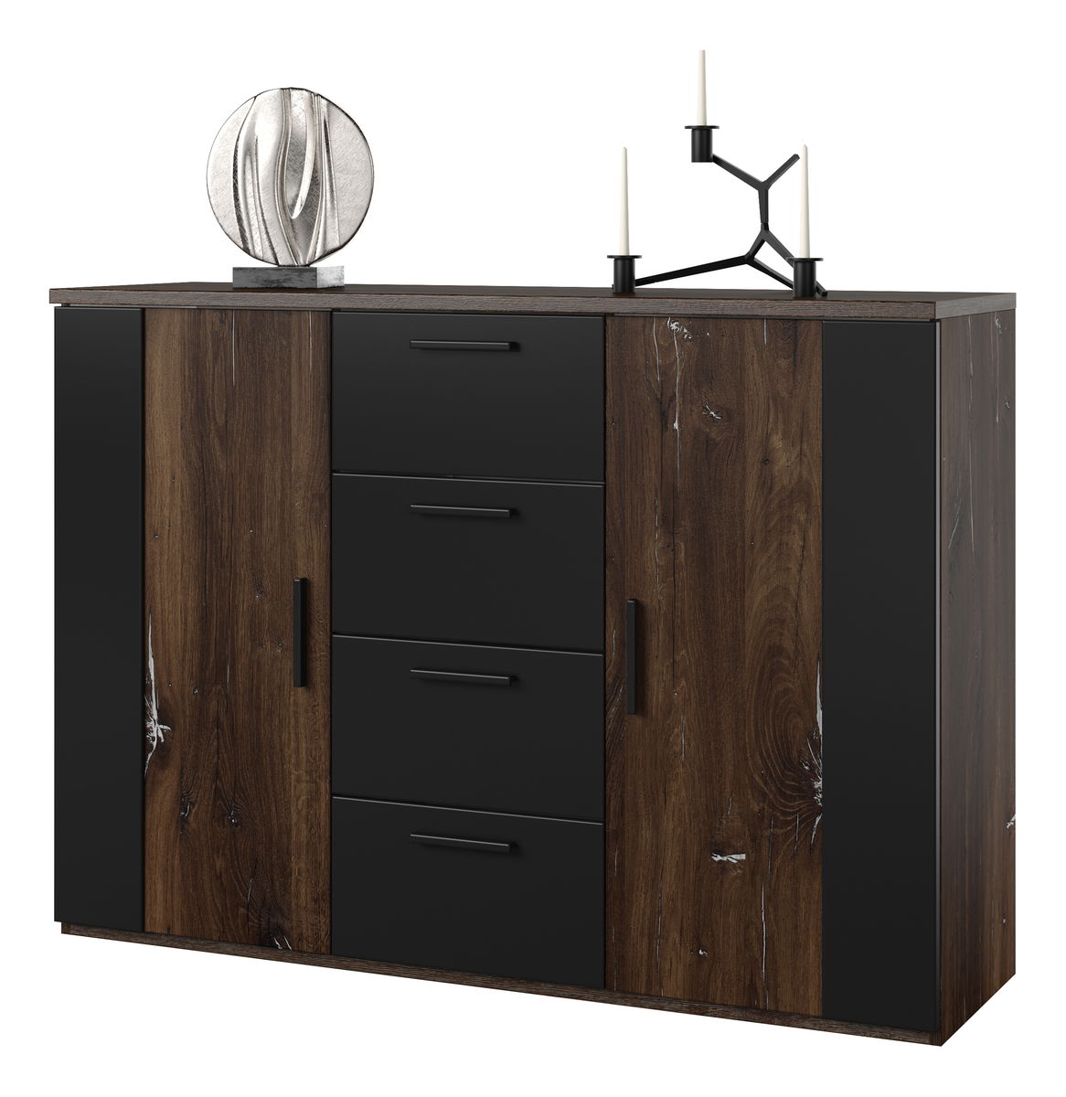 Komoda Signat Typ 26 (čierna + dub flagstaff + strieborná)