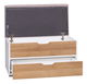 predná časť a telo: 16 mm hrubá drevotrieska; čalúnená klapka (T25 pena;) jedna zásuvka; vodiace lišty zásuvky; plastové nohy