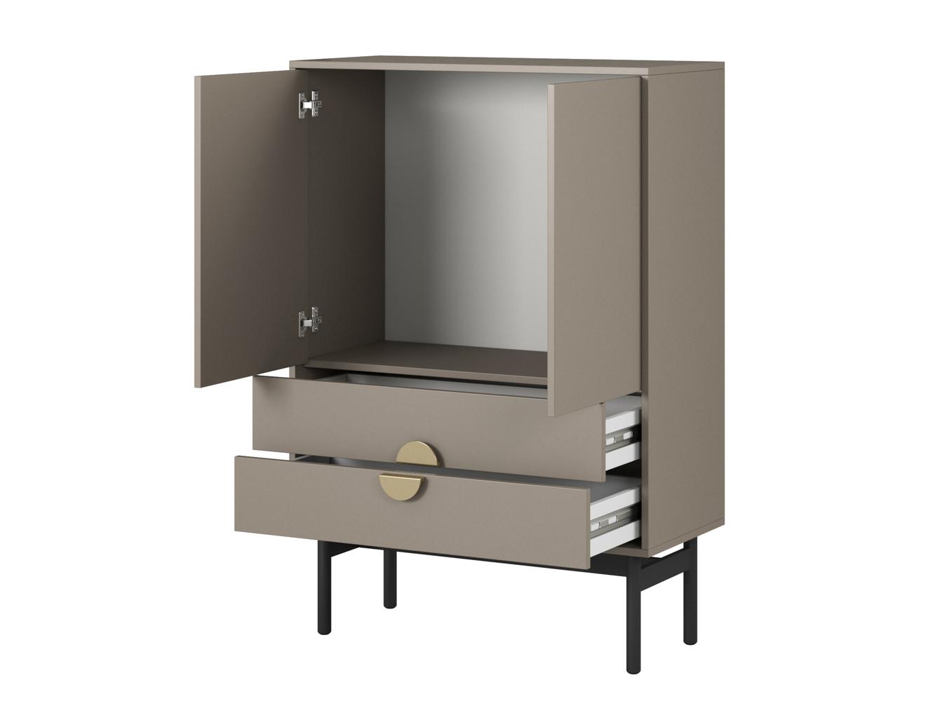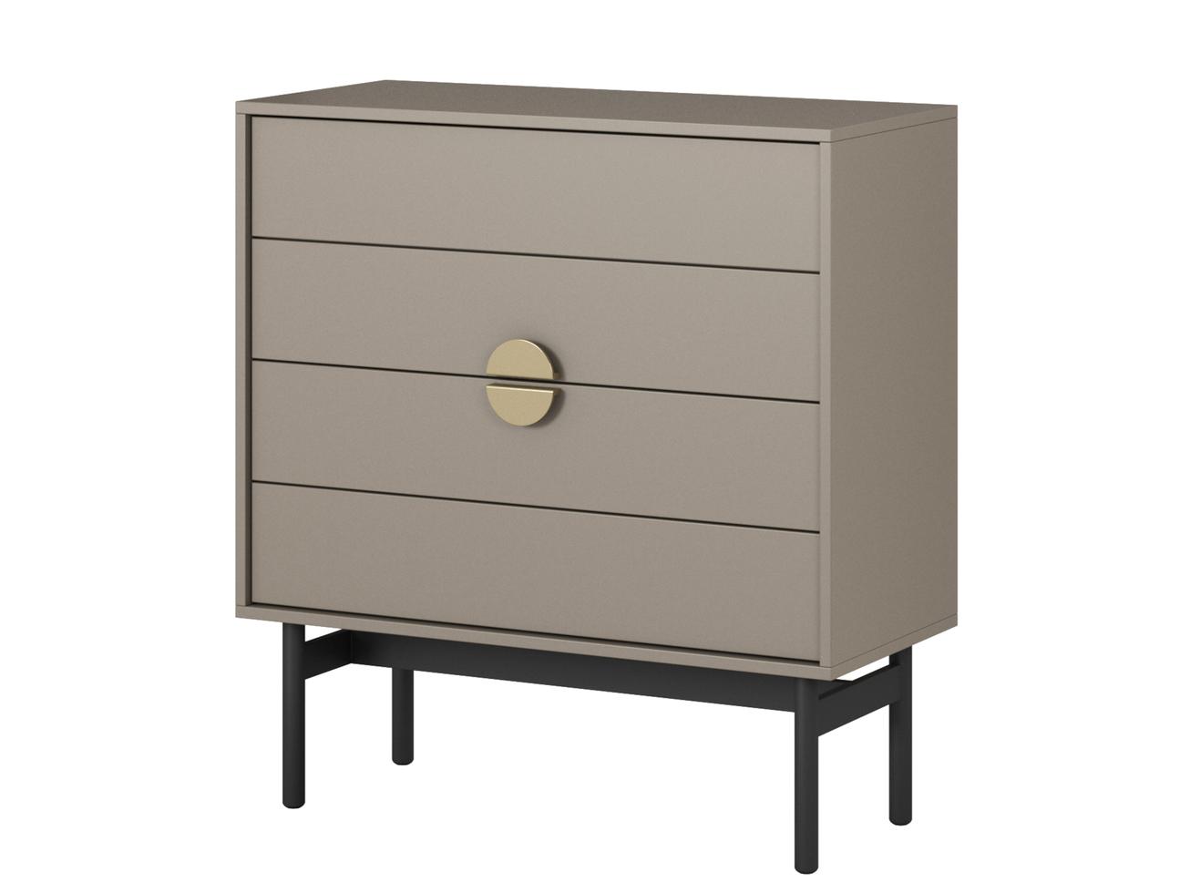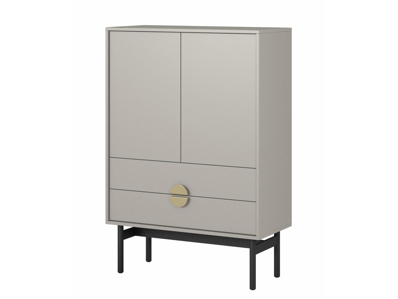 Chcete urobiť metamorfózu vo svojom interiéri? Máte radi originálne riešenia a jednoduché formy nábytku? Výberom našej kolekcie vnesiete do interiéru harmóniu a eleganciu a potešíte svojich hostí Vysoká komoda s jedinečným dizajnom v elegantnej farbe dokonale zapadne do moderných interiérov. Je vyrobený z kvalitnej laminovanej drevotrieskovej dosky, ktorá zabezpečí dlhodobé a bezproblémové používanie. Jeho charakter obohacuje pevný rám vyrobený z ocele, ktorý robí nábytok nielen odolným, ale dodáva mu aj industriálny šarm. Zlaté úchytky tvoriace kruh sú zase nielen praktickým prvkom, ktorý uľahčuje otváranie, ale dodávajú celej skrinke eleganciu a jemný lesk. Tento malý, ale rafinovaný detail odlišuje nábytok a dodáva mu mierne luxusný akcent. Komoda bola navrhnutá s ohľadom na funkčnosť, preto má zásuvky na menšie predmety a uzavretý výklenok na veľké boxy alebo elektronické zariadenia. Kombinácia nevšednej farby s čiernym rámom a zlatými úchytkami vytvára harmonický a moderný celok, ktorý dokonale zapadne do rôznych interiérových aranžmánov a dodá im jedinečný charakter. Táto komoda je nielen praktickým úložným riešením, ale aj dizajnovým prvkom, ktorý ozdobí a zvýrazní individuálny štýl každej miestnosti Detaily produktu: korpus a čelá z laminovanej dosky Stone Grey U727 ST9, odolné voči vlhkosti, vysokej teplote. a škrabancov, rám z čiernej prášk lakovanej ocele, ktorá uľahčuje udržiavanie poriadku pod nábytkom, úchytky zlatej farby z brúsenej ocele.