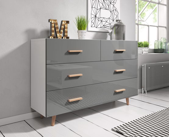 Komoda Sweden 4 (sivý lesk + biela matná) *výpredaj