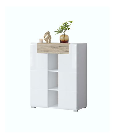 Komoda Talvar (lesklá biela + dub sanremo)