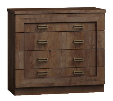 Širšia komoda Tedy v rustikálnom štýle. Hodí sa do jedální, spální a obývačiek. Ocenia ju milovníci masívnejšieho nábytku tradičného vzhľadu. Úchyty zásuviek sú kovové. Farebné prevedenie komody je dub lefkas.