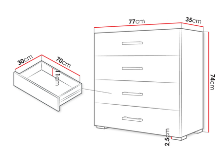 Poznajte model, ktorý sa vyznačuje mimoriadnou univerzálnosťou. Komoda Teratino 4SZ je spojením praktickosti a krásneho vzhľadu. Dokonale zapadne do priestoru obývačky. Svoje miesto si nájde aj v spálni alebo v predsieni. Skvele doplní aj detskú a tínedžerskú izbu. Prezentovaný variant je namontovaný na malých nohách. Komoda disponuje aj mnohými praktickými úložnými priestormi. Komoda Teratino 4SZ vám umožní usporiadať si veci každodennej potreby.