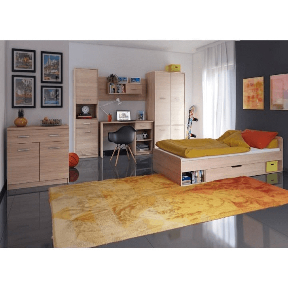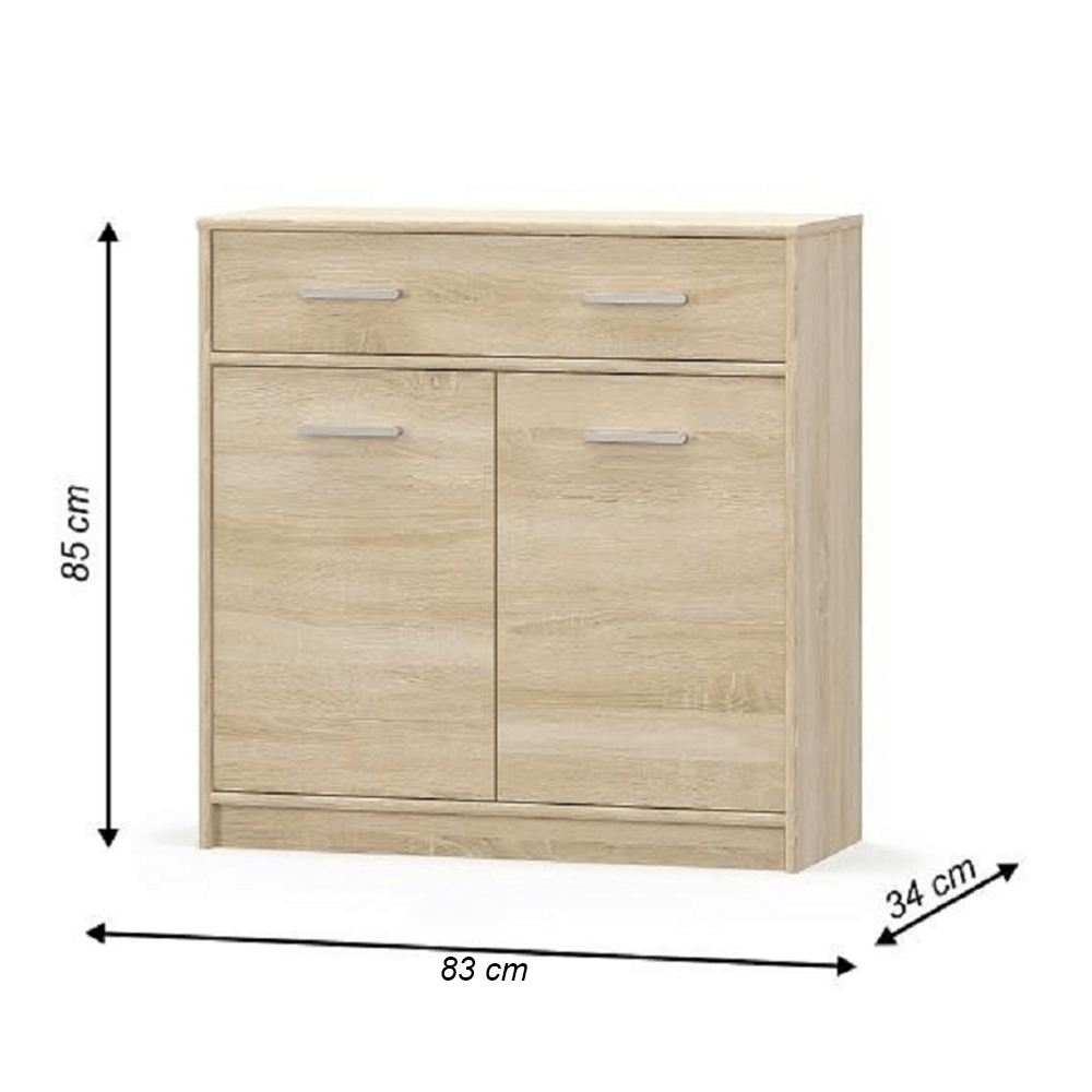 Komoda poskytujúca dostatok úložného priestoru. Hodí sa najmä do detskej alebo študentskej izby, ale poslúži aj v obývacej izbe, predsieni alebo spálni. Komoda má zásuvku a dvoje dvierka, za ktorými je jedna polica, ktorá rozdeľuje interiér na 2 časti. Prevedenie komody je dub sonoma.