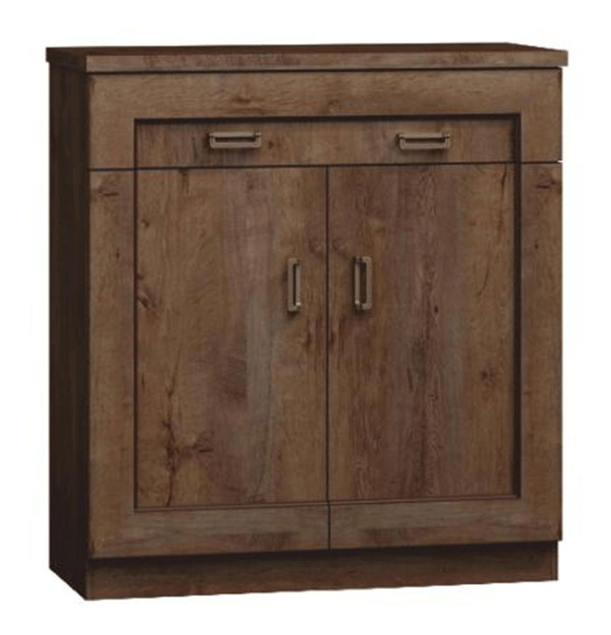 Komoda Tedy pre milovníkov rustikálneho štýlu. Masívnejší vzhľad je doplnený väčšími kovovými úchytmi na dvierkach a zásuvkách. Farebné prevedenie komody je dub lefkas.