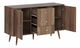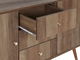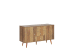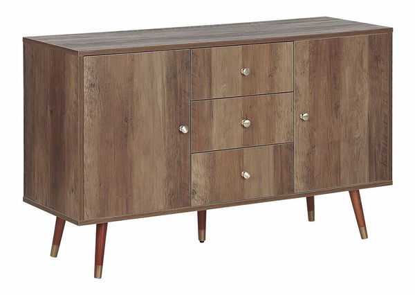 Štýlová komoda s dvoma priestrannými skrinkami a tromi zásuvkami pomôže vniesť poriadok do každého interiéru. Je vyrobená z drevotriesky a MDF vo farbe tmavého duba a skvele ladí s kovovými úchytkami a štíhlymi drevenými nohami. Táto komoda inšpirovaná retro štýlom je ideálnym doplnkom do obývacej izby alebo spálne.
