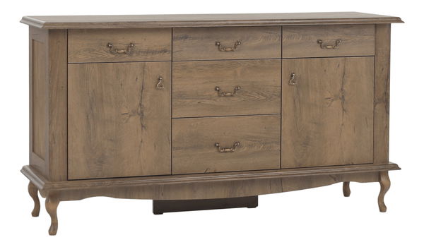 Komoda Valiara DA7 je kus nábytku vyrobený z kvalitného materiálu dub lefkas s DTD laminovanou/ABS hranou. Jej farba dub lefkas a rozmery 165x47x89 cm dokážu byť skvelou doplnkovou časťou vášho interiéru. Komoda má hrúbku materiálu 30 mm a výšku spodného priestoru od podlahy 15 cm. Navyše je vybavená dvoma jednodverovými skrinkami, päťou zásuvkami, 3D efektom, kovovými úchytkami, drevenými nožičkami a ABS hranou. Tento kus nábytku bude skvelým doplnkom vášho obývacieho priestoru a poskytne vám dostatok úložného priestoru pre vaše veci.