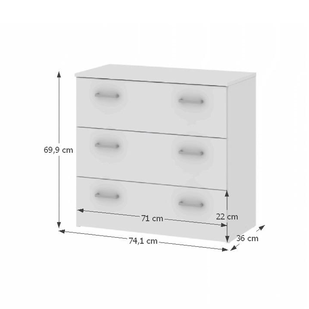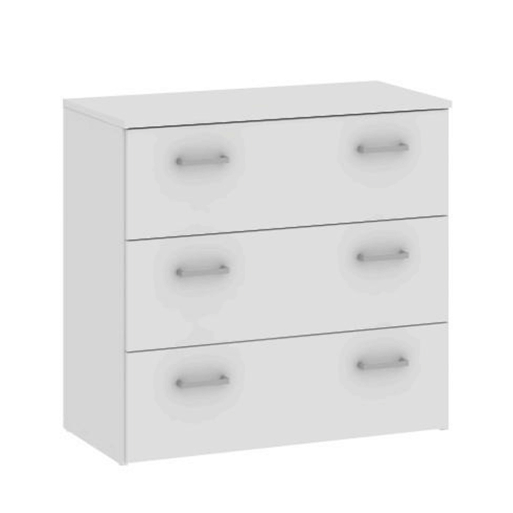 Moderná a praktická komoda má tri zásuvky, ktoré sa jednoducho otvárajú pomocou úchytov. Dokonale zapadne do spálni, obývacích izieb, pracovní alebo predsiení. Dodávame v demonte.