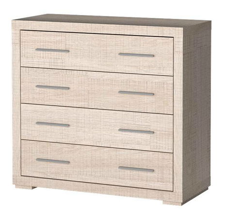 Komoda Vega 01 (dub santana svetlý) s výškou 91 cm, šírkou 97 cm a hĺbkou 40,5 cm je ideálnym doplnkom do vášho domova alebo kancelárie. Svojou štýlovou eleganciou a praktickým dizajnom ponúka štyri veľké zásuvky na uskladnenie množstva odevov, ozdôb, dokumentov a ďalších vecí. Kovové úchyty zabezpečujú spoľahlivosť a stabilitu nábytku, čo z neho robí neodolateľný doplnok pre každý interiér. S touto komodou budete mať všetko čo potrebujete na dosah ruky a vaša organizácia bude oveľa jednoduchšia.