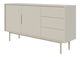 Vyberáte moderný nábytok, ktorý vám bude slúžiť niekoľko rokov? Máte radi jednoduchosť a klasické tvary? Výberom kolekcie vnesiete do svojho interiéru elegantný štýl a závan sviežosti Dvojdverová komoda je dokonalým spojením funkčnosti a elegancie. Jeho klasická farba spolu so zlatou, predĺženou rukoväťou dodávajú interiéru jemný a moderný charakter. Komoda vyrobená z kvalitnej laminovanej dosky zaujme nielen svojim vzhľadom, ale aj odolnosťou Masívne drevené nohy dodávajú komode ľahkosť a zároveň zdôrazňujú jej stabilitu. Dizajnéri si dali záležať na každom detaile a vytvorili kus nábytku, ktorý dokonale zapadne do moderného dizajnu interiéru. Ďalšou výhodou sú tri premyslené zásuvky, ktoré poskytujú dostatočný priestor na uloženie rôznych predmetov. Vďaka funkcii tichého zatvárania sa zásuvky otvárajú a zatvárajú plynulo a bez hluku, vďaka čomu je používanie komody nielen praktické, ale aj príjemné pre užívateľa. Jeho minimalistický dizajn v spojení s vysokou kvalitou spracovania z neho robí dokonalý doplnok moderného elegantného interiéru Detaily produktu: korpus vyrobený z laminovanej drevotrieskovej dosky Cashmere 5981 BS hrúbky 16 mm, ktorá je odolná voči poškriabaniu a vlhkosti, konštrukcia vystužená 0,8 mm a. Hrany 0,45 mm, ktoré dodávajú odolnosť a stabilitu, chrbty potiahnuté papierom na spevnenie celku, zásuvky umiestnené na guľôčkových vodidlách s funkciou push-to-open, pánty s funkciou tichého zatvárania.