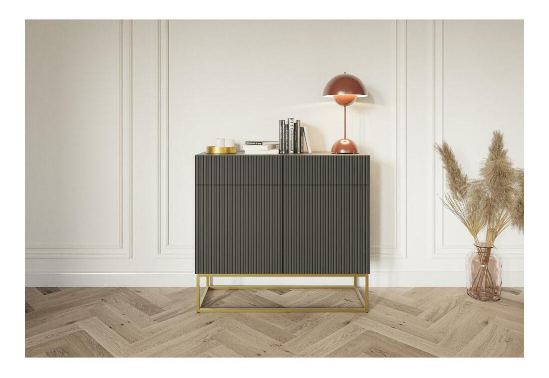 ZobraziťZariaďujete si svoj vysnívaný byt a na dokončenie diela potrebujete ešte štýlový nábytok? V takejto situácii vám navrhneme našu jedinečnú kolekciu - nábytok, ktorý ľahostajne neprejdete Komoda je spojením minimalizmu s dizajnérskym akcentom v podobe módnych lamiel vec jedinečný charakter - v kombinácii s veľkými farebnými rastlinami bude nábytok vyzerať naozaj skvele. Za dvierkami sú štyri priestranné výklenky, do ktorých sa zmestí náhradné oblečenie alebo dokumenty. V hornej časti sú dve zásuvky, kde si môžete uložiť drobné doplnky alebo doplnky. Ak si chcete izbu personalizovať, dôležité rodinné suveníry či fotografie si nepochybne nájdu svoje miesto na širokej doske skrinky. Ďalšou výhodou nábytku sú pevné nohy v podobe rámu z prášk lakovanej ocele, ktoré mu poskytujú maximálnu stabilitu a zároveň sú štýlovým doplnkom do obývačky Detail produktu: korpus skrine je vyrobený z 16 mm laminovaná doska Kronospan 190 PE, ktorá je odolná voči vlhkosti a poškriabaniu, čo zaisťuje dlhé používanie, lišty na prednej strane sú vyrobené z MDF, čelá skriniek sa otvárajú metódou push to open, nohy sú vyrobené z práškového- potiahnutá oceľ, s klzákmi zabraňujúcimi poškriabaniu podlahy.