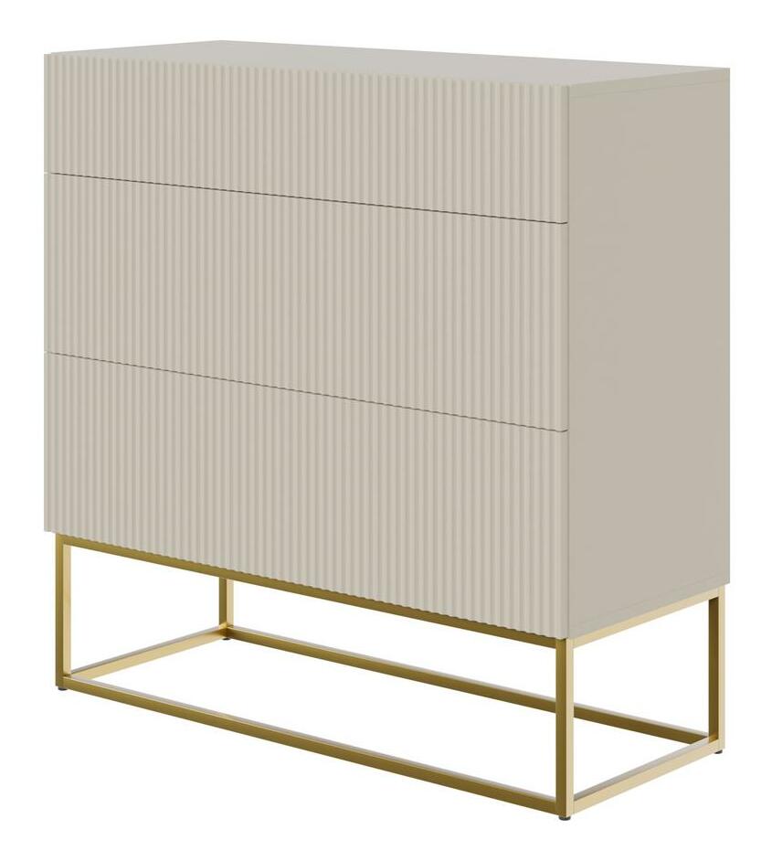 ZobraziťZariaďujete si svoj vysnívaný byt a na dokončenie diela potrebujete ešte štýlový nábytok? V takejto situácii Vám predstavíme našu jedinečnú kolekciu - nábytok, ktorý ľahostajne neprejdete Komoda so zásuvkami je spojením minimalizmu s dizajnérskym akcentom v podobe módnych lamiel celá vec jedinečný charakter - v kombinácii s veľkým, S farebnými rastlinami bude nábytok vyzerať naozaj skvele. Nábytok má tri priestranné zásuvky, ktoré budú skvelým miestom pre kancelárske potreby, dokumenty alebo náhradné uteráky. Ak si chcete izbu personalizovať, dôležité rodinné suveníry či fotografie si nepochybne nájdu svoje miesto na širokej doske skrinky. Ďalšou výhodou nábytku sú pevné nohy v podobe rámu z prášk lakovanej ocele, ktoré mu poskytujú maximálnu stabilitu a zároveň sú štýlovým doplnkom do obývačky Detail produktu: korpus skrine je vyrobený z 16 mm laminovaná doska U750 ST9 Grey Taupe, ;ktorá je odolná voči vlhkosti a poškriabaniu, čo zaisťuje dlhé používanie, lamely na prednej strane sú vyrobené z MDF, zásuvky sa otvárajú metódou push to open, nohy z ocele s práškovým nástrekom, s kĺže, aby sa zabránilo poškriabaniu podlahy.