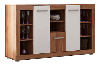 Moderná komoda je vyrábaná až v ôsmich farebných prevedeniach, čím sa skvele hodí k ostatnému nábytku vo Vašej obývacej izbe alebo jedálni. Okrem otvorených odkladacích priestorov s poličkami obsahuje aj časti uzavreté dvierkami a jednu zásuvku. Je doplnkom k obývacej stene modelovej rady Viki. Ak potrebujete viacej úložného priestoru, je možné si priobjednať aj šatníkovú skriňu v rovnakej farebnej kombinácii.