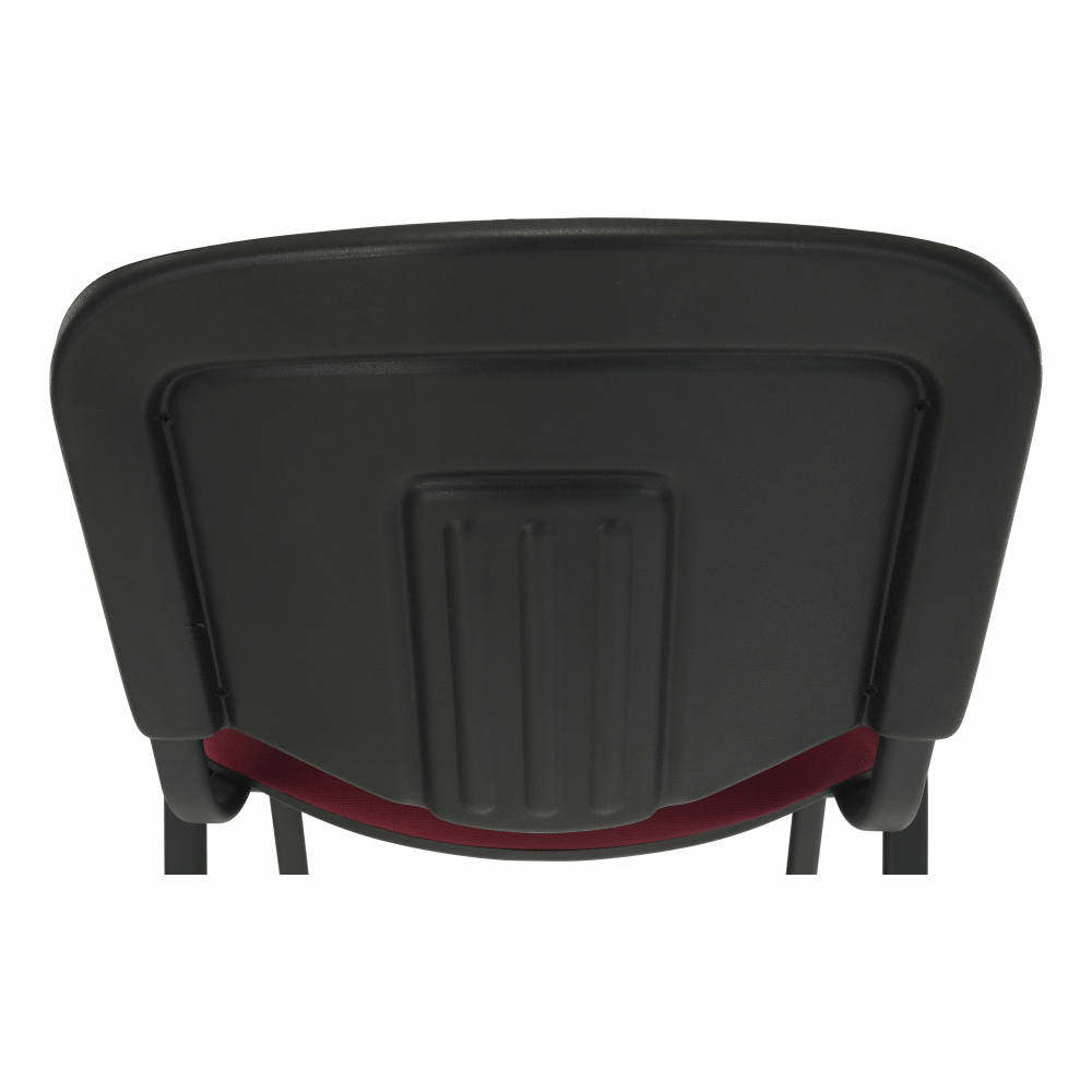 Stohovateľná stolička v čiernom prevedení nožičiek s bordovým poťahom