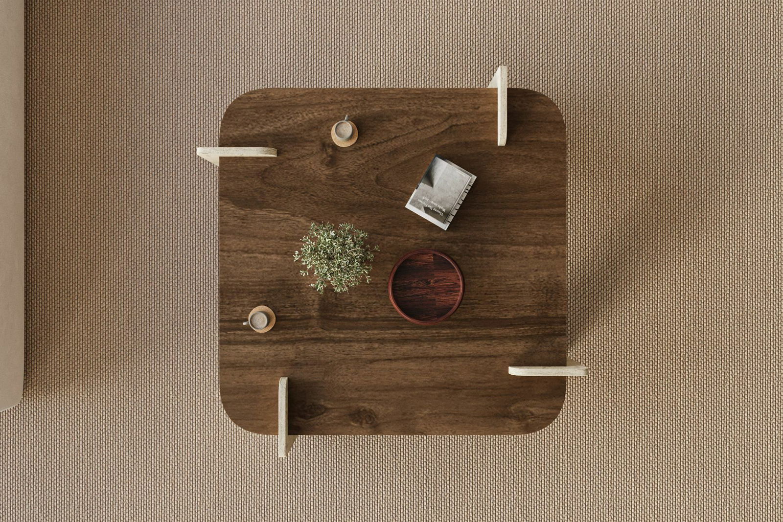- Konferenčný stolík Afro (orech + travertín)