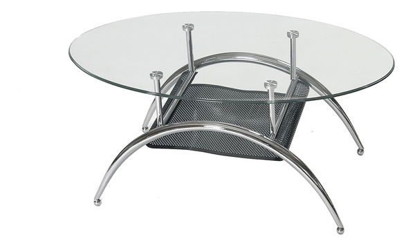 Konferenčný stolík André-Jonas má zaujímavo dizajnovavé chromové nožičky, ktoré tvoria dva poloblúky. Celú konštrukciu dopĺňaju štyri tyčky na ktorých je umiestnená oblúková sklenená doska. Poď ňou sa náchádza čierna sieťovaná polička, vhodná na uloženie potrebných vecí, ktoré chcete mať vždy poruke.