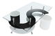 Elegantný konferenčný stolík ojedinelého a štýlového dizajnu. Polička stolíka je zahnutá do tvaru písmena S. Vrchná tabuľa stolíka je z číreho tvrdeného skla. Stolík má kovové nožičky a je vo farebnom prevedení biela farba v kombinácii s čiernou. K stolíku sú dodávané dve taburetky.