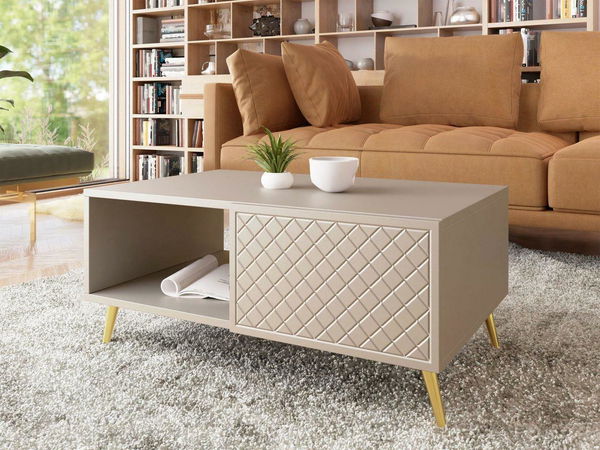Konferenčný stolík Baranto 1SZ (pieskovo béžová + zlatá)