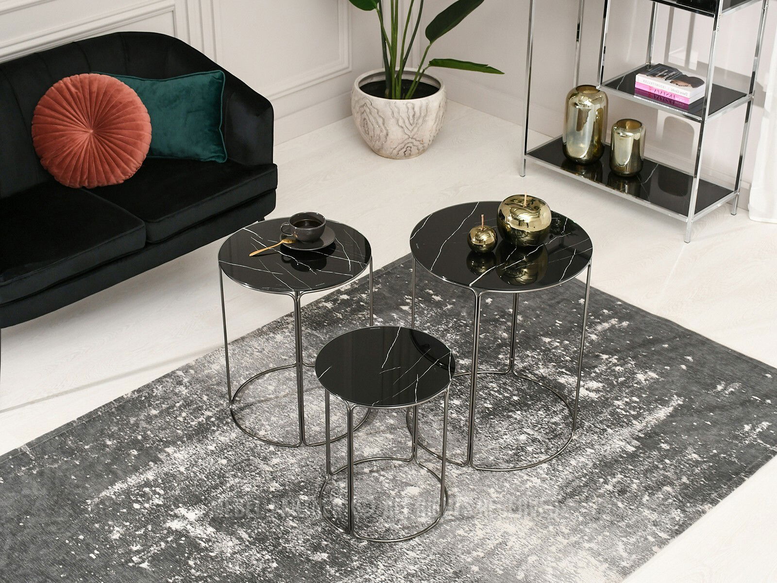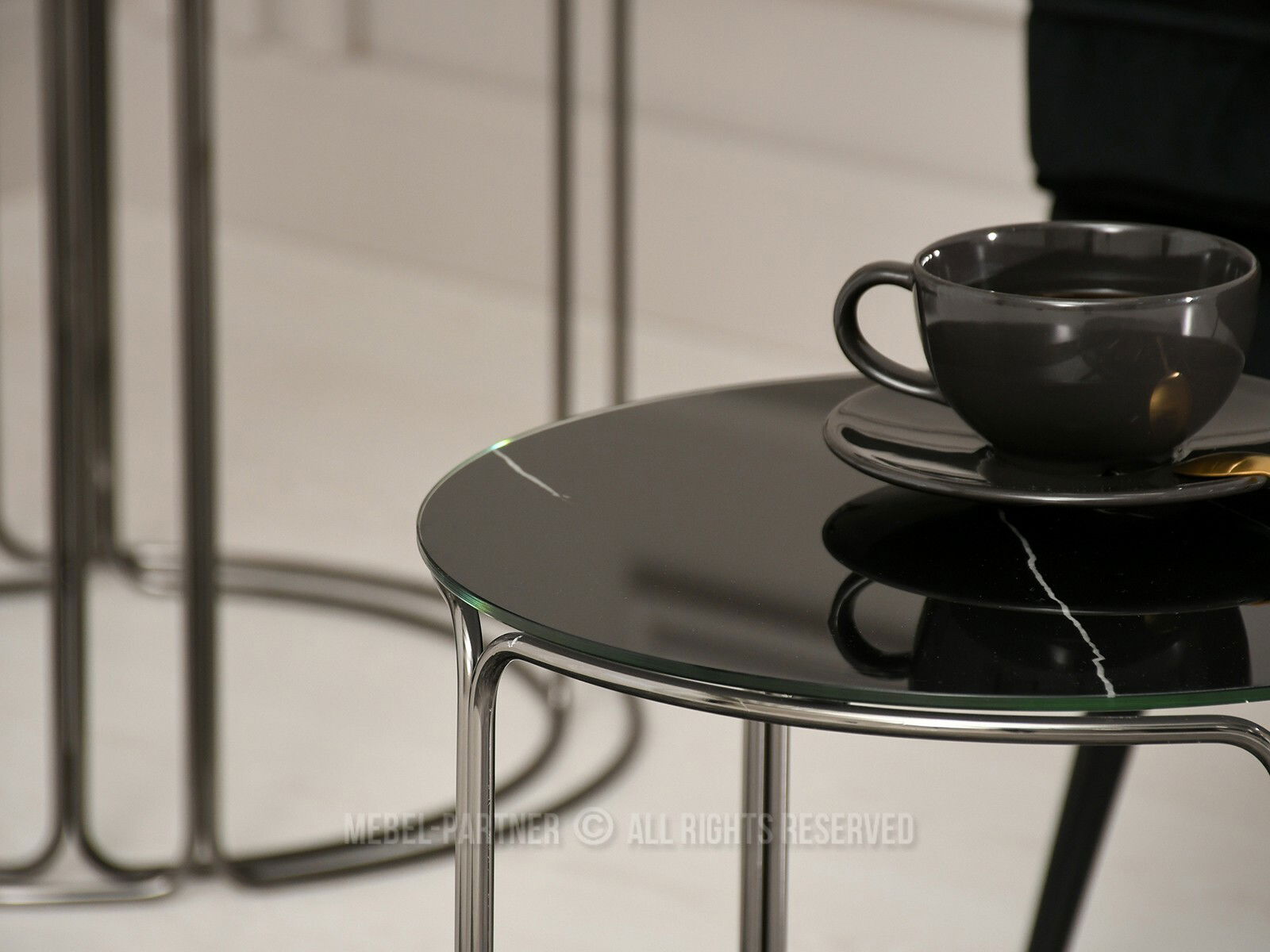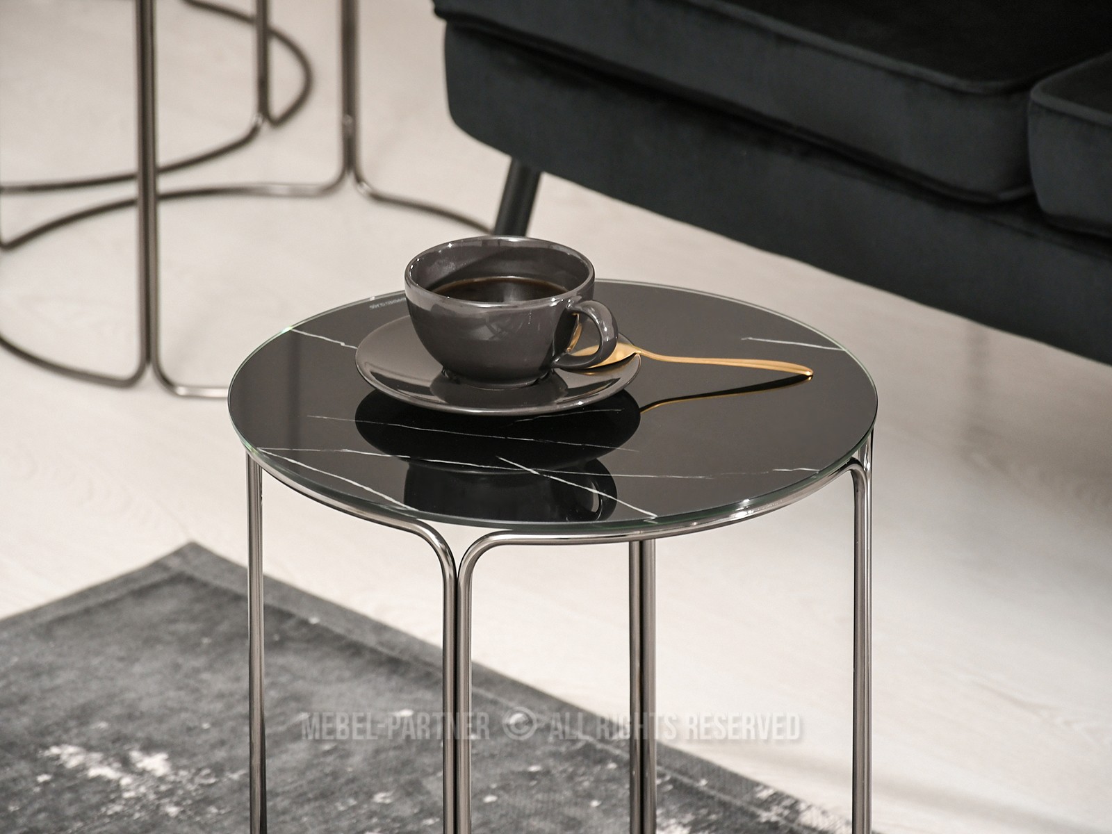 Konferenčný stolík Belianni Zest (čierny mramor + nikel)