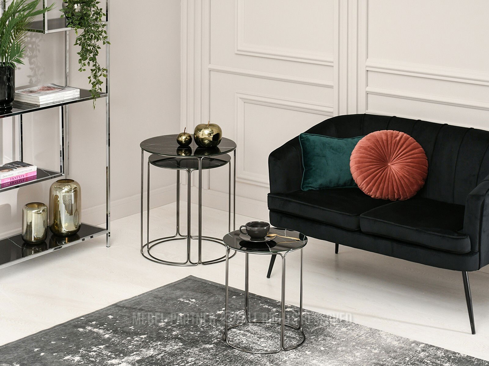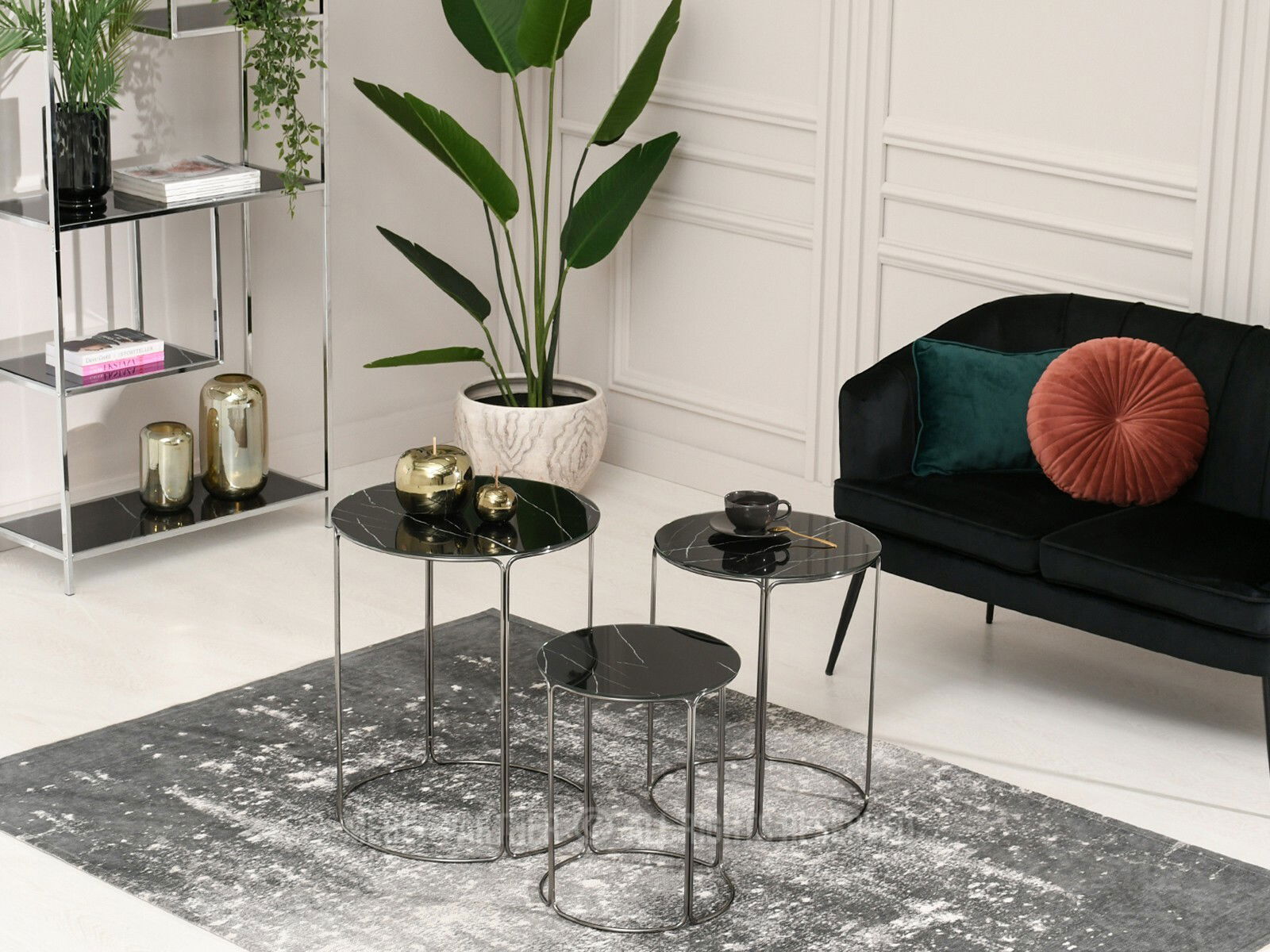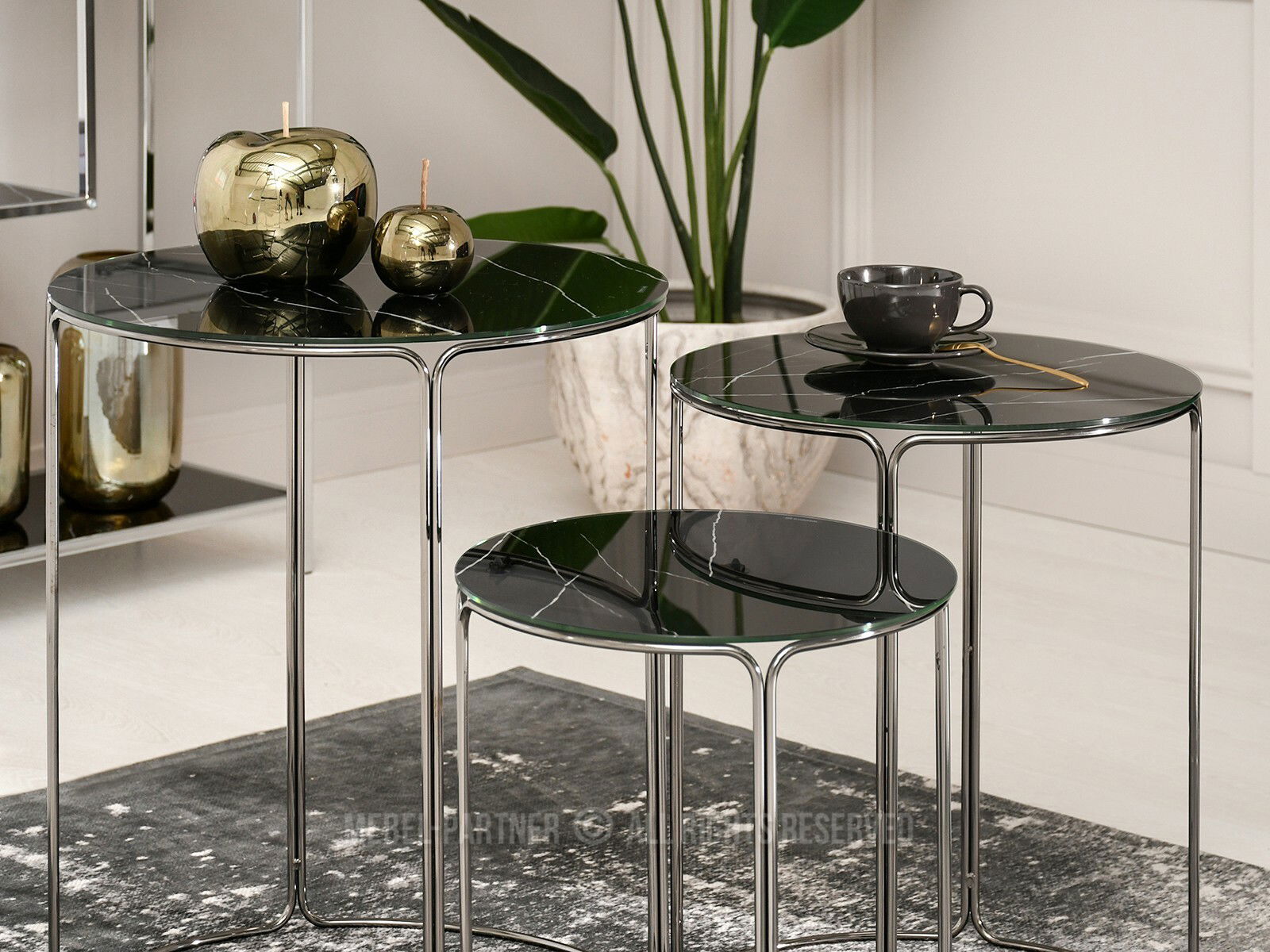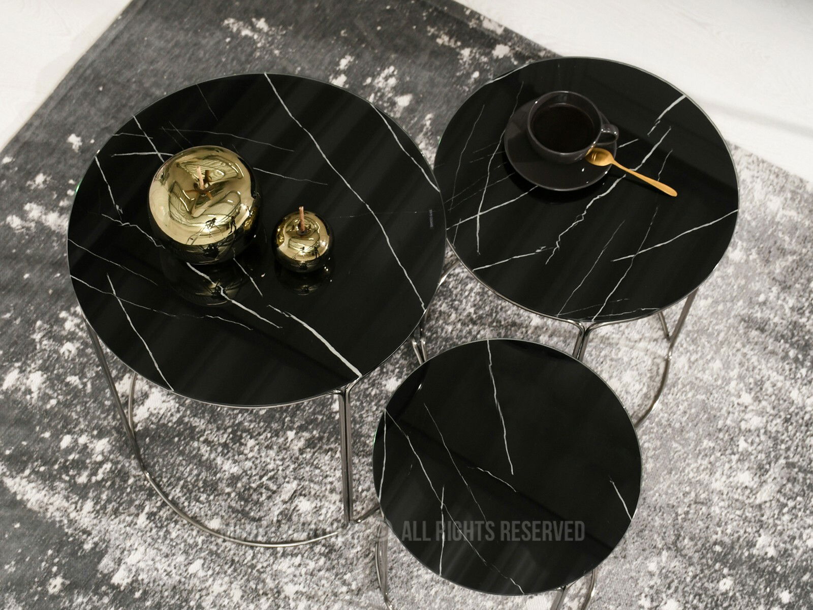 Konferenčný stolík Belianni Zest (čierny mramor + nikel)