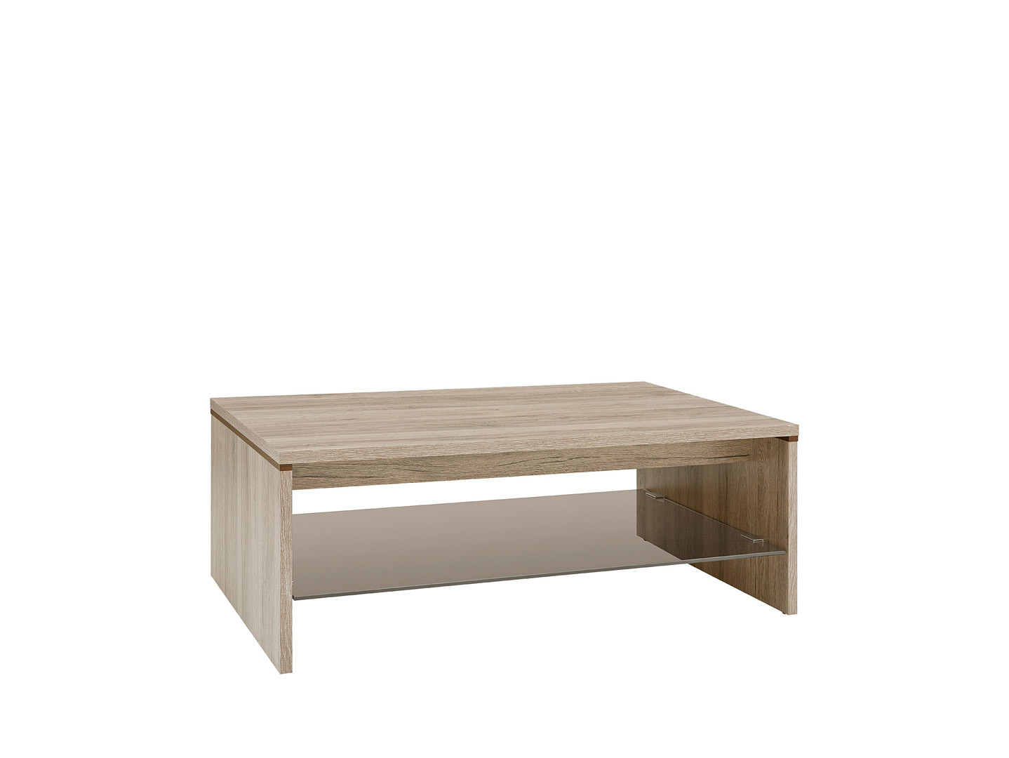 Veľmi pekný a elegantný konferenčný stolík LAW411l zo série Azteca značky BRW je k dispozícií vo farebnom prevedení dubového dreva a v spodnej časti sa nachádza úložný priestor zo skla, ktorý je zároveň dominantným dizajnovým prvkom stolíka. Konferenčný stolík je vhodný do moderného interiéru, kde sa vyžadujú neutrálne farby, ktoré dotvoria zároveň luxusnú atmosféru. Renomovaný výrobca Black Red White použil na výrobu stolíka kvalitné materiály.