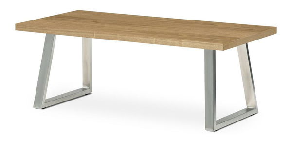 Konferenčný stôl v modernom dizajne, ktorý skvele zapadne do každého interiéru. Jeho doska je vyrobená z kvalitnej dyhy s dekorom duba, čo dodáva stolu elegantný a prírodný vzhľad. Nohy sú vyrobené z brúseného nerezu. Stolík je ideálny na každodenné posedenie v rodinnom kruhu alebo s priateľmi.
