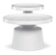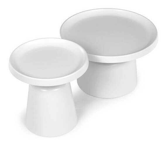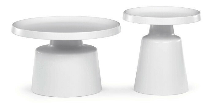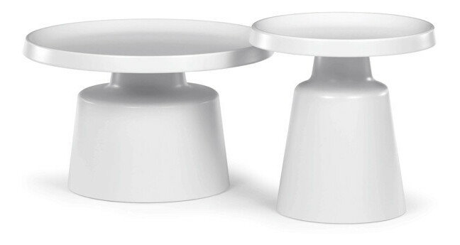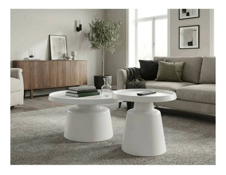 Sada dvoch konferenčných stolov v modernom dizajne ponúka kombináciu funkčnosti a štýlu. Obe dosky sú vyrobené z kovu s matnou bielou povrchovou úpravou, ktorá je odolná a ľahko sa udržiava. Stabilné kovové podnože zabezpečujú pevnosť a stabilitu stolov, pričom dekoratívne hrany dosiek dodávajú celkovému vzhľadu jemný detail. Väčší stôl má priemer 68,5 cm a výšku 43 cm, menší stôl potom priemer 49 cm a výšku 50,5 cm, čo umožňuje variabilné usporiadanie v priestore. Sada je vhodná pre moderné interiéry, kde oceníte jednoduchosť a praktickosť kovového prevedenia.