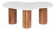 Tento konferenčný stolík je stelesnením prepracovaného luxusného dizajnu. Doska z pravého mramoru v klasickej bielej farbe vyniká nepravidelnou oválnou siluetou, ktorá okamžite upúta pozornosť. Bielu mramorovú dosku podopierajú pevné nohy z akáciového dreva. Tento konferenčný stolík presahuje hranice všednosti a je výrazným kúskom, ktorý ozdobí váš obytný priestor a vnesie doň dávku sofistikovanosti a funkčnosti.