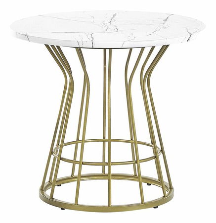 Vďaka tomuto nádhernému konferenčnému stolíku bude váš interiér elegantný a štýlový. Otvorená kovová konštrukcia podstavca v zlatom farebnom prevedení vytvára v kombinácii so stolovou doskou s mramorovým efektom kúsok, ktorý sa stane výrazným doplnkom akejkoľvek obývacej izby. Tento stolík bude vyzerať výborne či už v moderných alebo tradične zariadených interiéroch.