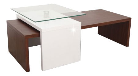 Konferenčný stolík s moderným dizajnom je vyrobený z kvalitnej MDF. Odtieň dreva orech baltimor s krásnou kresbou je doplnený o bielu s extra vysokým leskom HG. Číre sklo, hrúbky 8 mm, efektne dotvára celkový dizajn stolíka. Je ideálnym doplnkom do obývacej izby alebo kancelárie.