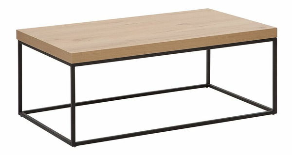 Elegantný a moderný dizajn s nádychom štýlu mid-century. Tento obdĺžnikový konferenčný stolík vnesie do vášho interiéru funkčnosť a eleganciu. Vďaka otvorenej kovovej konštrukcii pôsobí vzdušne a zároveň ponúka dostatok úložného priestoru. Stolová doska vyrobená z MDF materiálu s povrchovou úpravou vo farbe svetlého dreva stolíku dodáva čaro prírodného štýlu.