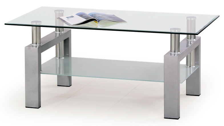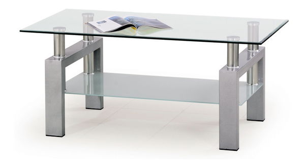 Dizajnový konferenčný stolík s farbou so strieborným efektom. Má dve odkladacie plochy zo skla. Konferenčný stolík je praktický doplnok k sedacej súprave v obývacej miestnosti, ale dá sa využiť aj v spálni či kancelárii.