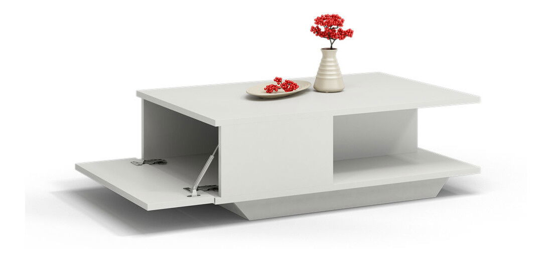 Konferenčný stolík Dosgracios 1 je ideálnou voľbou pre tých, ktorí hľadajú spojenie moderného dizajnu a praktickosti. Jeho elegantná biela farba a jednoduché línie sa skvele hodia do každého interiéru, pričom poskytuje dostatok úložného priestoru v podobe funkčného schovku s TIP-ON systémom, ktorý umožňuje jednoduché otváranie a zatváranie dvierok. S rozmermi 60 cm na šírku a 90 cm na hĺbku je tento stolík dostatočne priestranný na umiestnenie nápojov či dekorácií, čím sa stáva praktickým a štýlovým doplnkom vášho obývacieho priestoru.