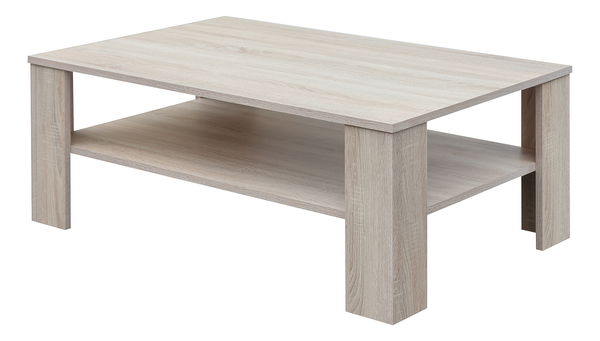 Jednoduchý konferenčný stolík Doux je vyrobený v dvoch obľúbených farebných prevedeniach: dub sonoma a biela. Pod hornou doskou sa nachádza praktická polička.