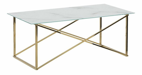Konferenčný stolík Elison (biela + zlatá) (mramorový efekt)