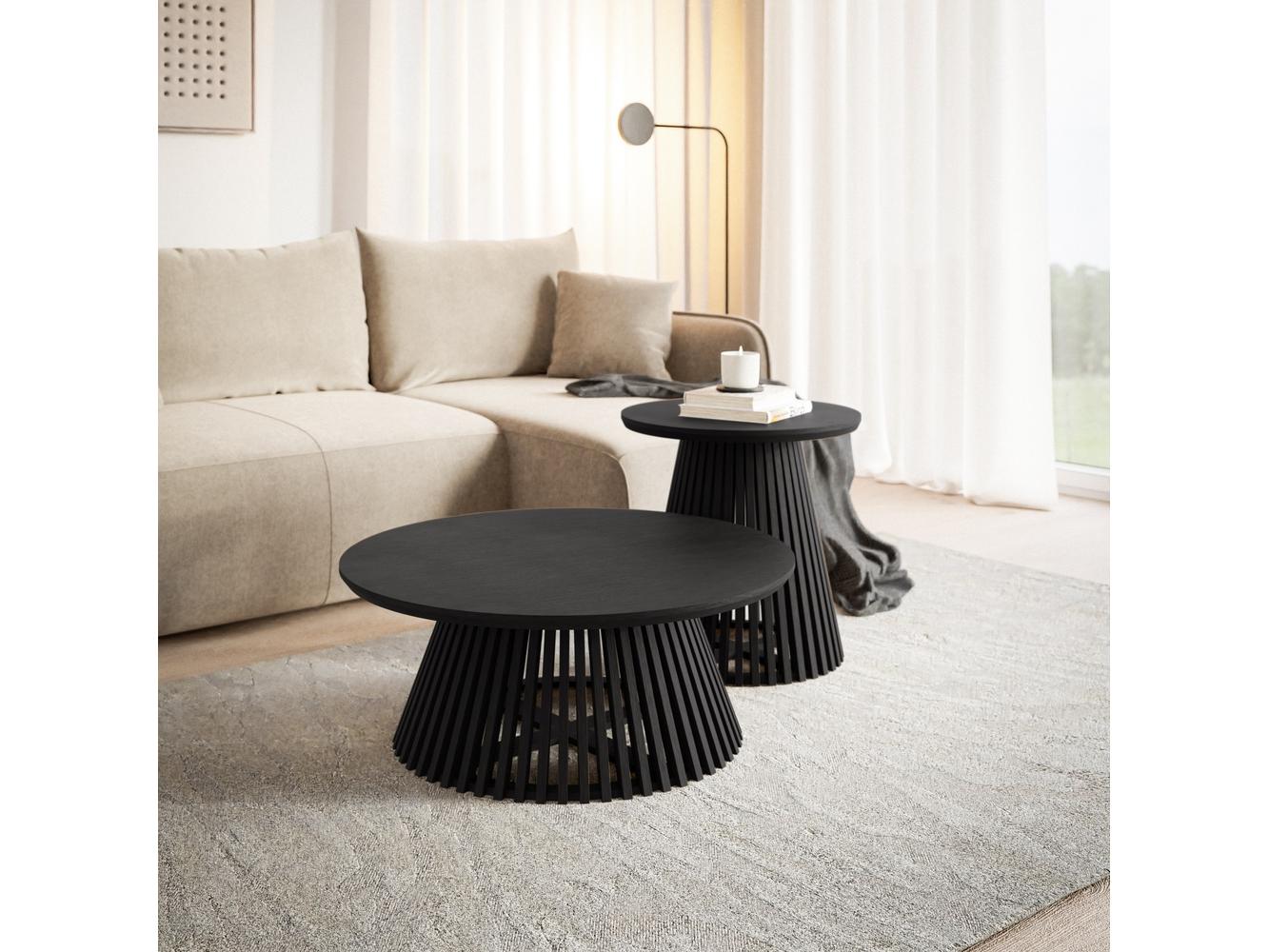 Ak hľadáte originálny stolík, ktorý doplní usporiadanie vašej obývačky, vyberte si krásnu kolekciu , s ktorou si vytvoríte priestor svojich snov Konferenčný stolík je kus nábytku, ktorý v sebe spája prvky industriálneho a Škandinávsky štýl, vytvárajúci jedinečný a výrazný dekoratívny prvok. Jeho okrúhly vrch s priemerom 50 cm a čierne farby mu dodávajú eleganciu a zároveň je mimoriadne praktickým riešením. Základ stolíka tvoria lamely, t.j. úzke pásy usporiadané paralelne k sebe, vďaka čomu to celé získa jedinečný charakter, vnesie do vášho interiéru výrazný prvok, ktorý mu dodá charakter a originalitu v kontexte industriálneho štýlu a škandinávskeho štýlu. Je ideálnym miestom na umiestnenie kávy, čaju alebo dekorácií, vytvára praktický a štýlový akcent vo vašom interiéri Detaily produktu: stolík vyrobený z dubového dreva, prírodného materiálu s vysokou životnosťou, odolnosťou proti poškodeniu a krásnym vzhľadom, povrch základne pokrytý dekoračné lamely ,lamely sú pozdĺžne lamely malej šírky a hĺbky, ktoré prebiehajú paralelne, priemer nohy stola v hornej časti: 21 cm, priemer nohy stola v spodnej časti: 40 cm, priemer dosky stola: 50 cm, farba: čierny dub .