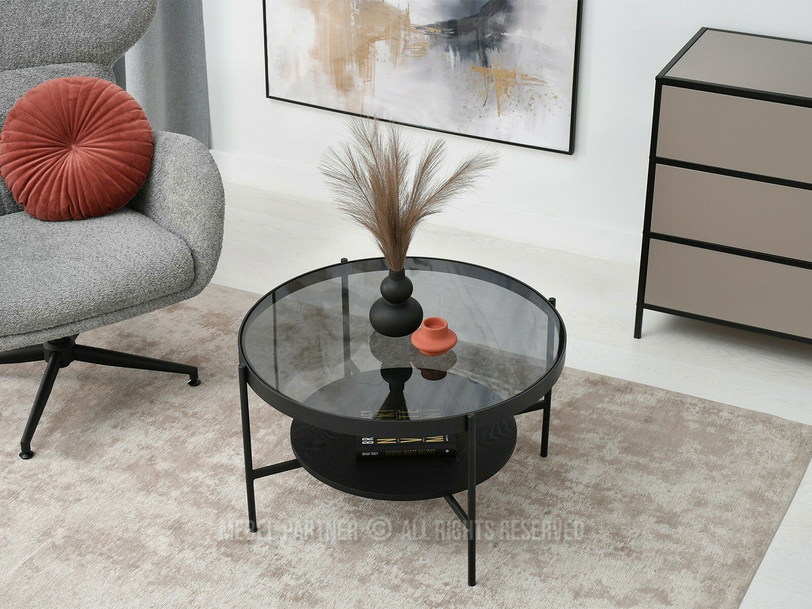 Konferenčný stolík Freya (dymové sklo čierne + čierna)