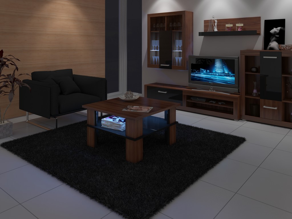 Na prvý pohľad bežný konferenčný stolík, ale svoju jedinečnosť ukáže až po zotmení. Modré LED osvetlenie vyzerá super a dodá nábytku a miestnosti úžasný efekt. Je to novinka na trhu s nábytkom. Konferenčný stolík má aj praktickú poličku, ktorá slúži na odkladanie novín, ovládača od TV, proste vecí, ktoré chcete mať vždy poruke. Umiestniť ho môžete do obývacej izby, pracovne, kancelárie alebo vo vstupnej hale. Farebné prevedenie je slivka v kombinácii s čiernym vysokým leskom.