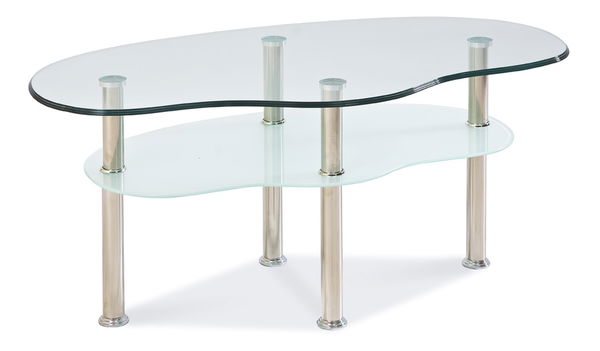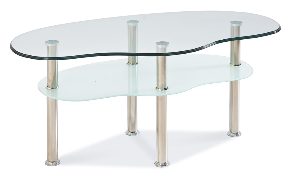 Nápaditý a moderný dizajn Vám ponúkne konferenčný stolík Lucca od značky Signal. Oválny tvar na jednej strane s nerovnosťou je nevšedný. Vrchná časť je z priehľadného skla a spodná časť z mliečneho tvrdeného skla.