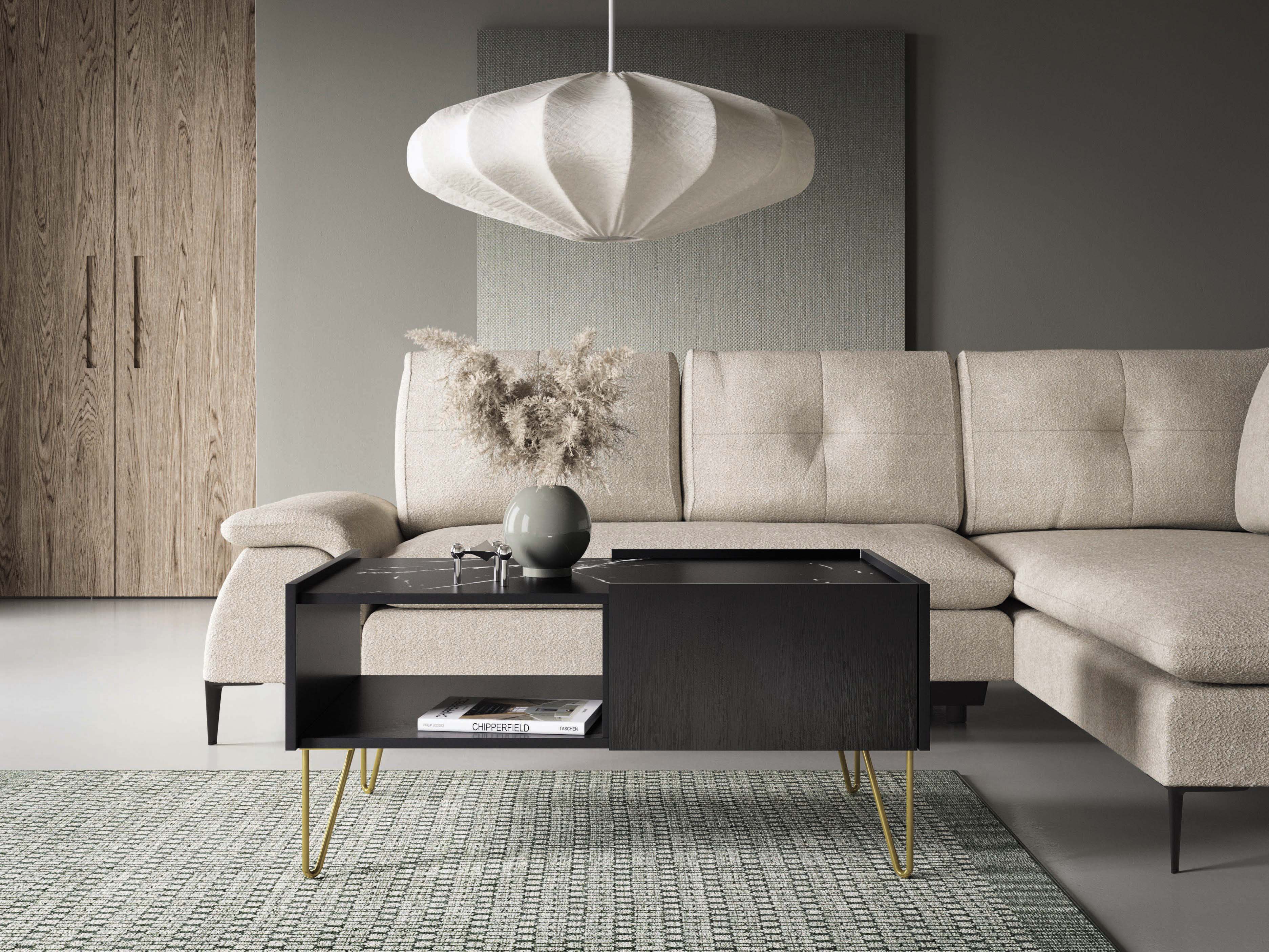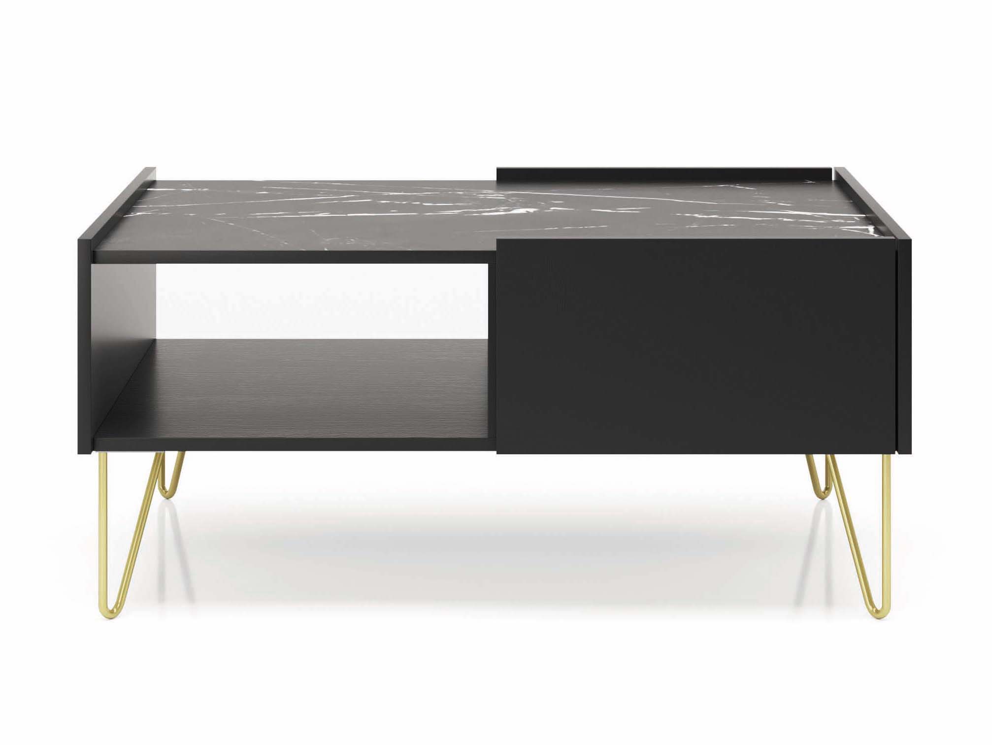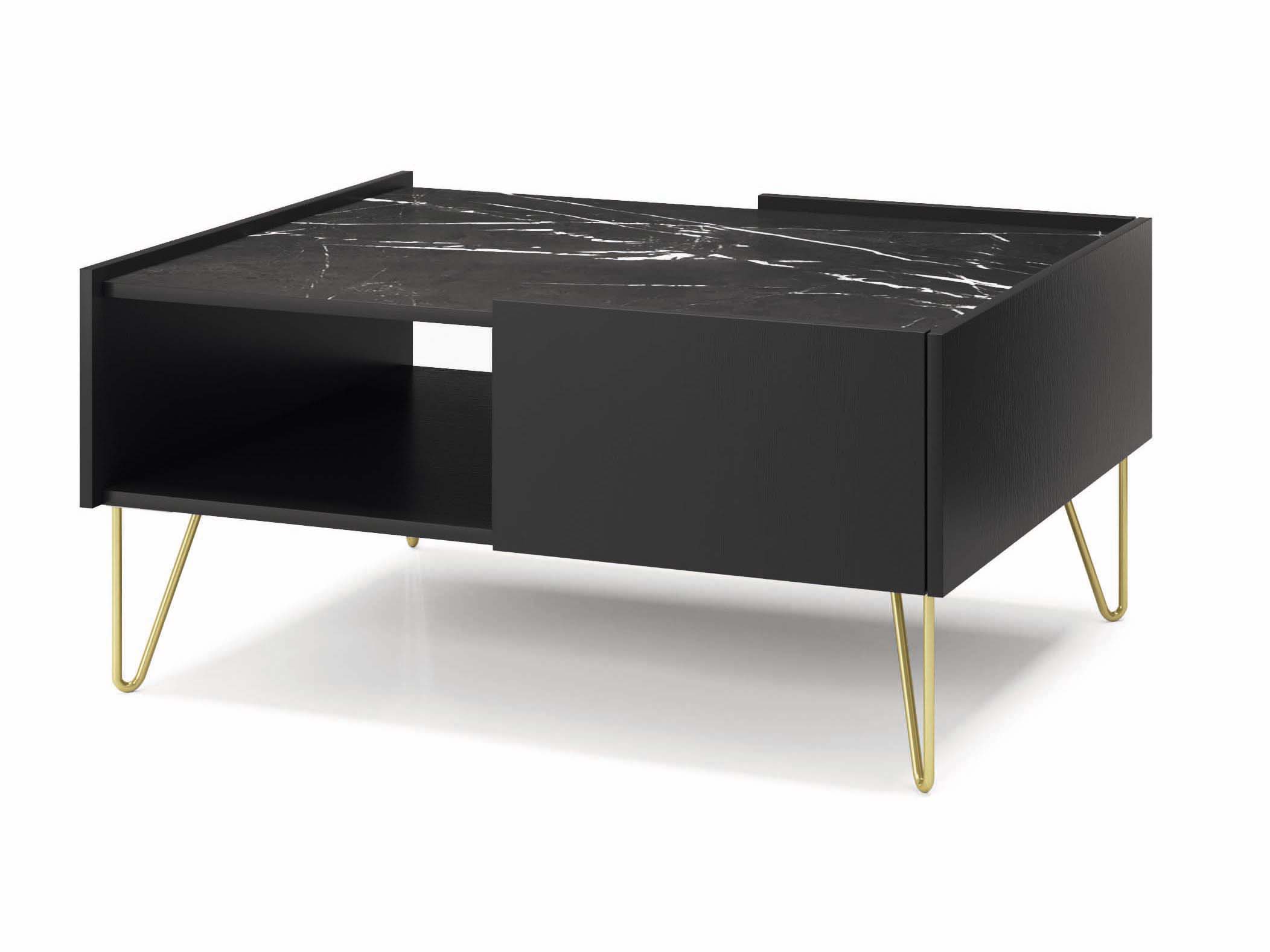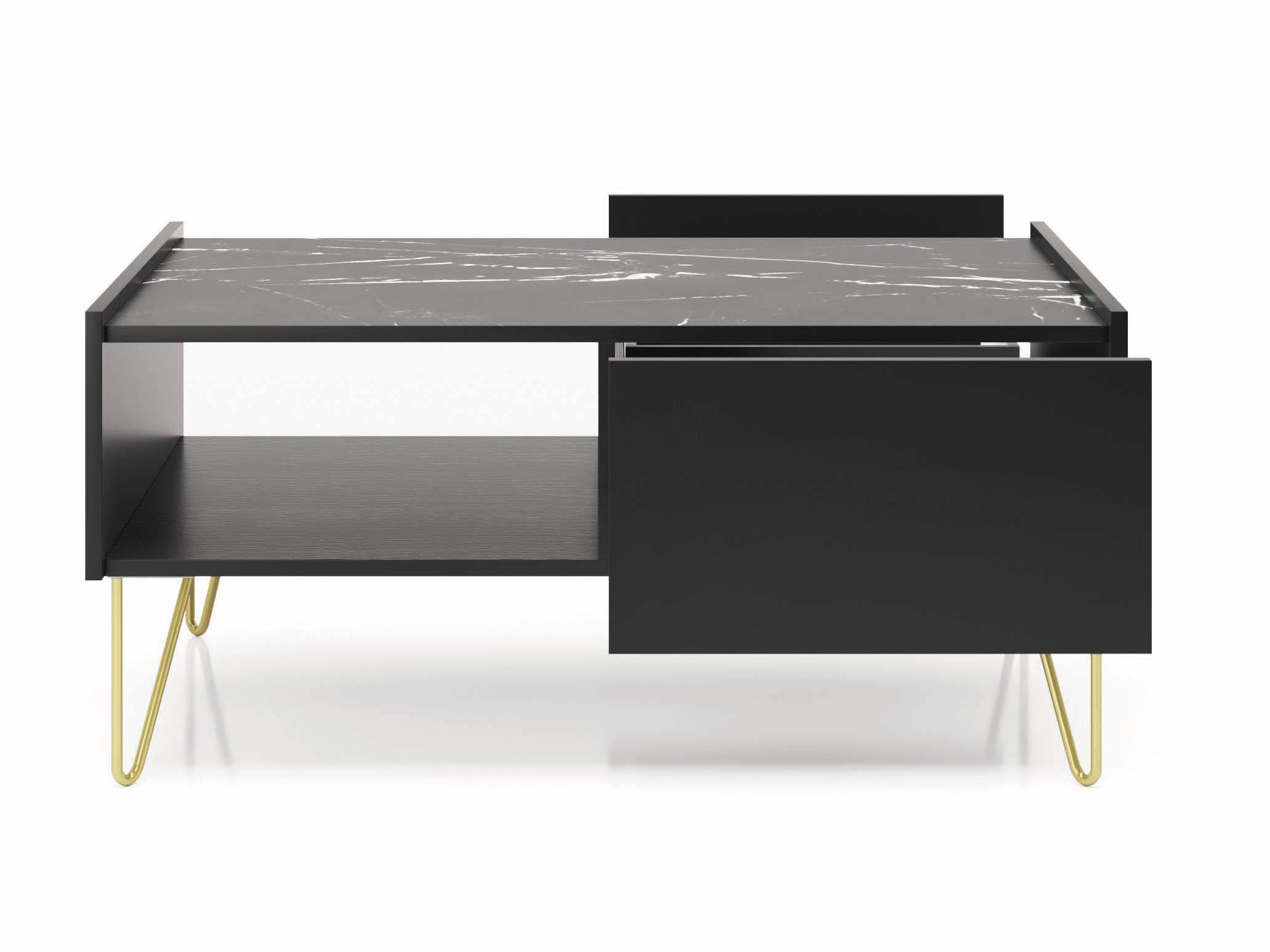 Konferenčný stolík Harvest L97 (grafit čierny + mramor black royal + zlatá)