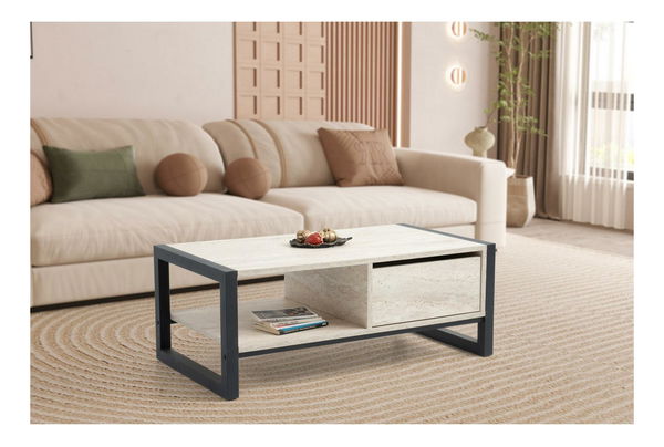 Jedálenský stôl Fergie (biely mramor + čierna) (pre 6 a viac osôb)