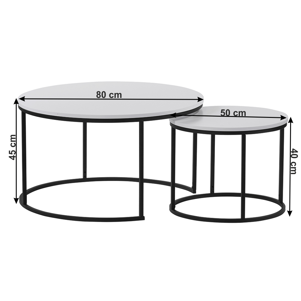 Prečo len jeden, ak môžete mať hneď dva? Reč je o konferenčných stolíkoch Inka. Tento šikovný dizajnový set pozostávajúci z 2 kusov okrúhlych stolíkov ohúri každú návštevu. Pevná konštrukcia z kovu stabilne podporuje pláty z MDF. Krásne prelínanie čiernej a bielej farby vytvárajú zaujímavý moderný prvok.