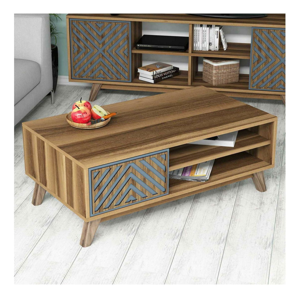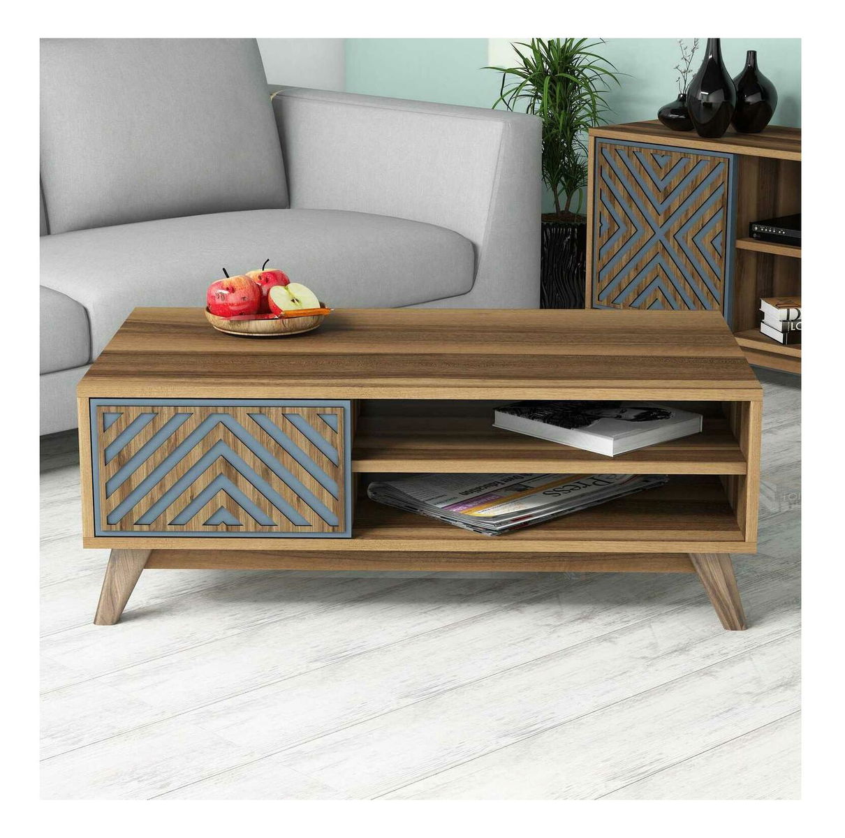 Konferenčný stolík Ivonne (orech + modrá)