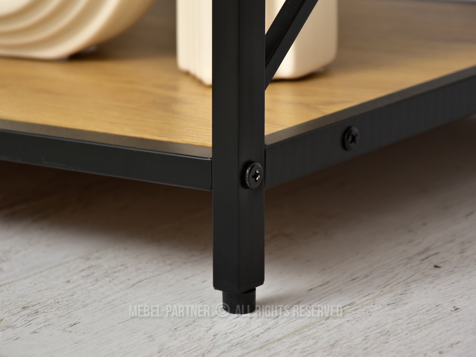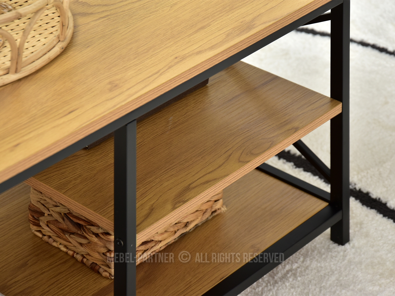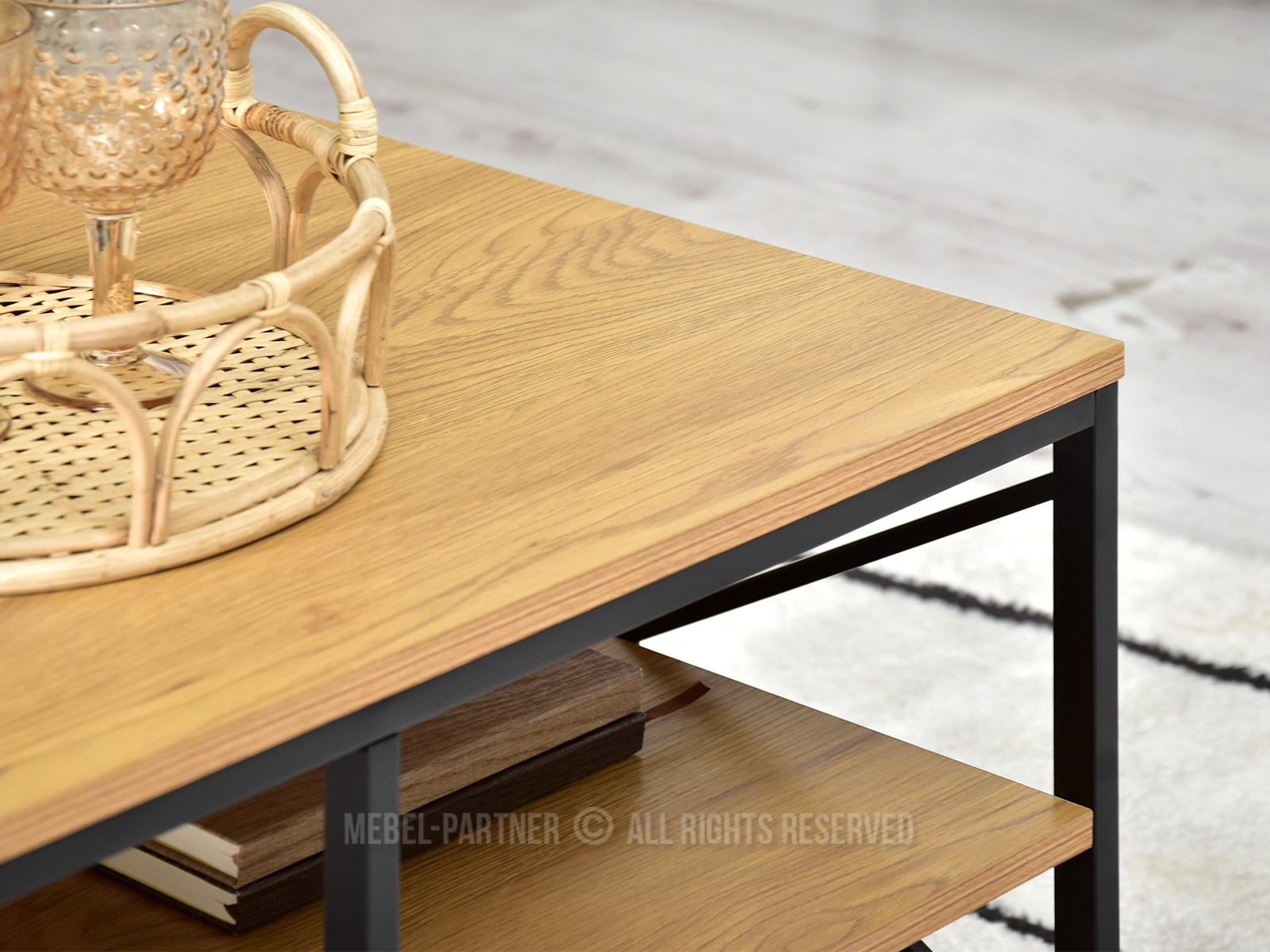 Konferenčný stolík Jukky v kombinácii dubového dreva a čiernej kovovej konštrukcie je praktickým a štýlovým doplnkom do obývacej izby. Jeho pevná doska poskytuje dostatok miesta na každodenné používanie, od servírovania kávy a občerstvenia po vystavenie dekorácií či kníh.