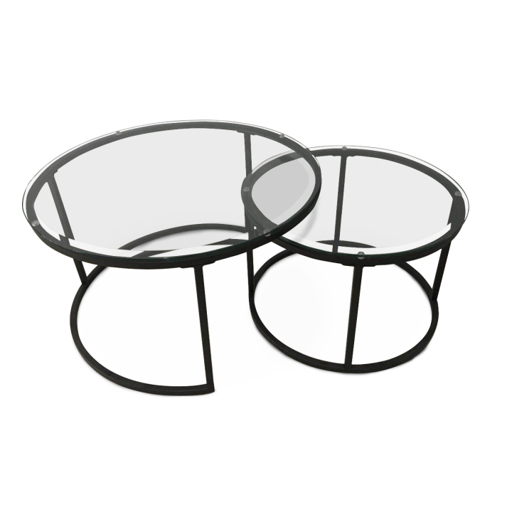 Sada 2 ks moderných konferenčných stolíkov s kovovou konštrukciou a z tvrdeného skla sú ideálne do obývačky aj pracovne. Sada obsahuje jeden väčší a jeden menší stolík, dajú sa zasunúť pod seba.